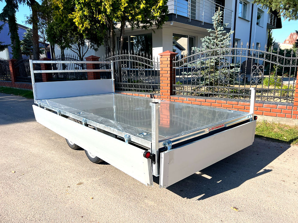 Rama przyczepy jest cynkowana ogniowo, wykonana z profili stalowych oraz blachy S355MC.